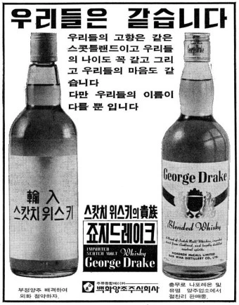 지금은 아니지만, 한국에서도 위스키를 생산했던 적이 있다. 1970년대 후반, 위스키의 소비가 증가함에 따라 정부는 국산 주류 개발 계획을 세워 스코틀랜드 몰트 위스키 함량 30%의 국산 위스키를 개발하고 시판하였다.