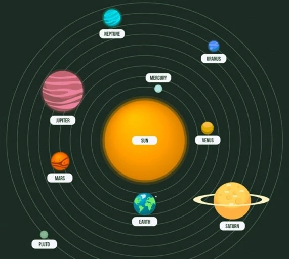 코페르니쿠스는 우주라는 신전 중심에 태양을 놓고, 그 주위에 지구를 비롯한 행성들을 배열하였다. 안쪽으로부터 차례로 수성 · 금성 · 지구 · 화성 · 목성 · 토성이 있고, 그 이외의 항성을 가장 바깥쪽 천체로 하는 균형 잡힌 우주 체계를 만들었다. 그는 우주를 유한한 것으로 생각하였다.