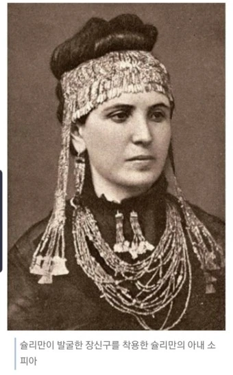 금으로 된 보물들이었다. 그것은 슐리만에 의해 빛을 볼 때까지 3000년간을 그곳에 묻혀 있었던 것들이었다. 그는 그중 귀걸이 한 쌍과 장식 목걸이를 그의 어린 그리스인 아내에게 걸어주며 속삭였다.