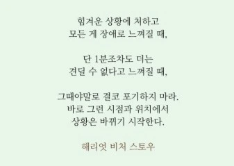 “사람 죽고 사는 일도 있는데, 죽고 사는 문제만 아니면, 살아만 있으면 뭐든 할 수 있으니까 결코 좌절하지 말라.”