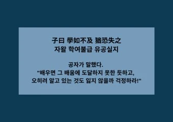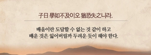 공자께서 말씀하셨다. “배움은 따라가지 못할 듯이 하면서도 행여 때를 잃을까 두려워하여야 한다.”