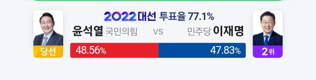 역대 최고의 초박빙의 대선이었다. 24만 표 차이. 영화에서 24만 명이 보면 망한 영화라고 할 정도의 정말 어이가 없는 차이일 수밖에 없다. 굳이 복기를 통해 결과를 분석하자면, 60대 이상의 투표율이 80%를 넘겼는데, 40대가 77%밖에 되지 못했다. 나 역시 강남 주민이지만 그 서초를 중심으로 한 강남의 주민들은 기어코 빨간당에 표를 압도적으로 던졌다. 135만의 표가 들어있던 강남 3구를 필두로 서울에 사는 그들이 그렇게 결정했단다.