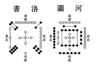 아래 그림과 같은 것인데, 동서남북 중앙으로 일정한 수로 나뉘어 배열되어 있으며, 낙서(洛書)와 함께 주역(周易)의 기본 이치가 되었다.