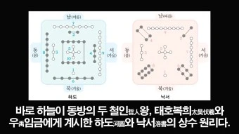 두 번째는, 조금 어려울 수 있는 개념이기도 한 하도(河圖)에 관련된 고사인데, 이것 역시 하늘에서 징조의 개념으로 내놓은 것이라고 해석하여 세상이 안정되어 잘 다스려졌기 때문에 나오는 상서로운 징조로 해석된다. 이것은 주역의 기본개념인 팔괘로 이어지는데, 낙서(洛書)라는 것과 함께 이해해야 하는 개념으로 간략하게 설명하자면 다음과 같다.