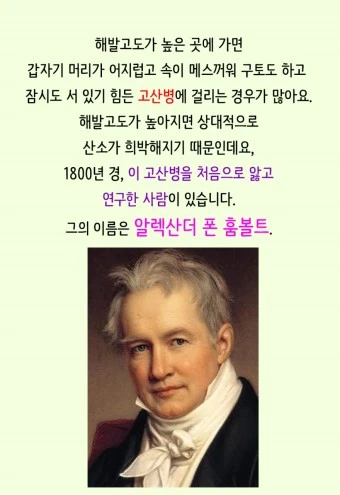 독일의 지리학자, 자연과학자, 박물학자, 탐험가로 근대 지리학의 금자탑, 대작인 <코스모스(Kosmos)>의 저자로 유명한 칼 리터와 함께 근대 지리학의 시조라 불리는 프리드리히 빌헬름 하인리히 알렉산더 폰 훔볼트(Friedrich Wilhelm Heinrich Alexander Freiherr von Humboldt)의 이야기이다.