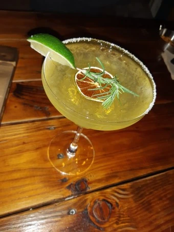 잔의 테두리에 라임 즙을 묻힌 뒤 소금이 붙도록 만드는, 일명 리밍이라 불리는 과정을 거쳐 준다. 입자가 굵은 소금을 사용하는 것을 추천하며, 개인적인 취향에 따라 림 절반에만 리밍을 하는 하프 문 스타일로 해도 무관하다.