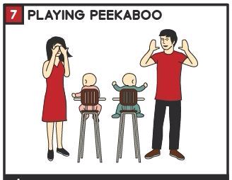 단순하지만 아이가 가장 좋아하는 까꿍놀이. 3-6개월 아이들은 물건이 사라졌다 나타는 것에 관심을 가집니다. 사라졌다 나타나는 것을 반복하면서 '대상영속성'을 익히는 것이죠.