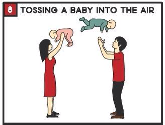 다소 위험하지만, 아이들 공중으로 던져주면 참 좋아하죠. 30분에 90칼로리 소모됩니다. 어깨와 팔 근육 단련에 좋고요.