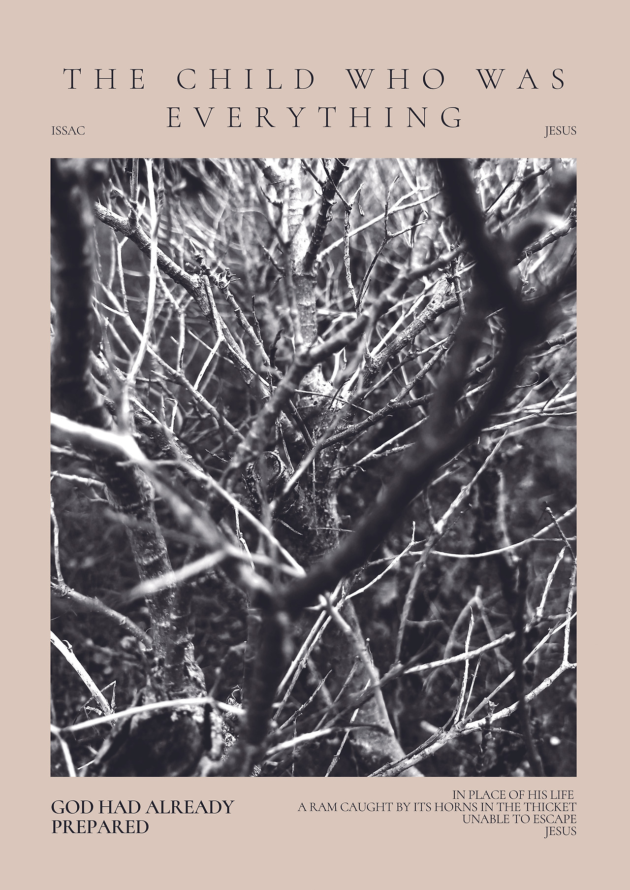 a ram caught by its horns in the thicket,