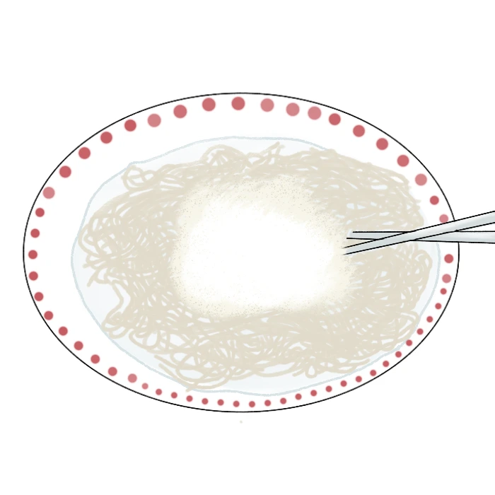 삶은 국수에 육수가 아닌 찬물 한 대접, 그리고 그 위에 설탕 몇 숟가락이면