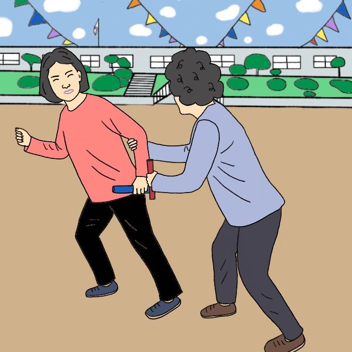 술 취한 경진 아빠는 바통을 준다는 것이 땅바닥에 패대기치는 바람에 다음 주자가 재빨리 뒤돌아와 주워 뛰었으나 이미 뒤처져도 한참 뒤처졌으니 이번 운동회에 경진이 동네는 망한 듯하다.