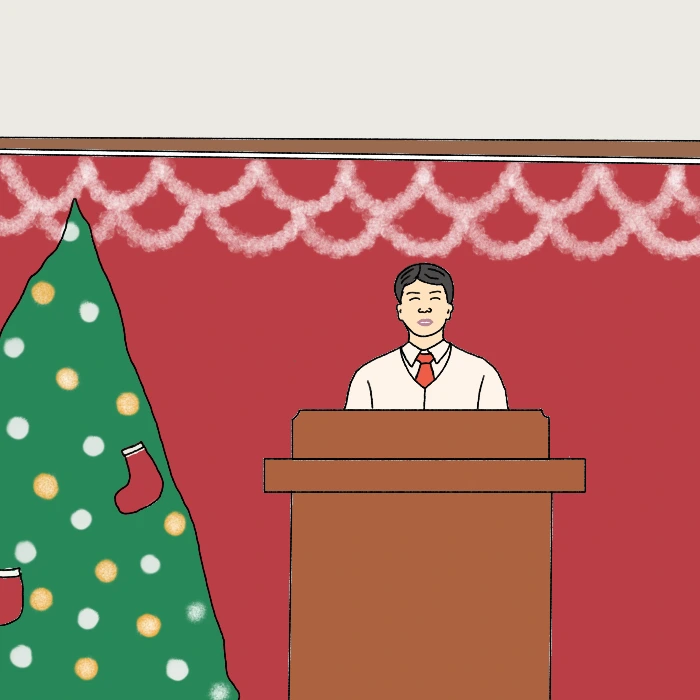 '평소에 한 번도 가지 않는 교회를 선물 준다고 일 년에 딱 한 번!! 크리스마스에만 가면 목사님 얼굴 보기가 너무 민망하고 부끄러운데.... 아 그래도 선물을 준다는데...?'