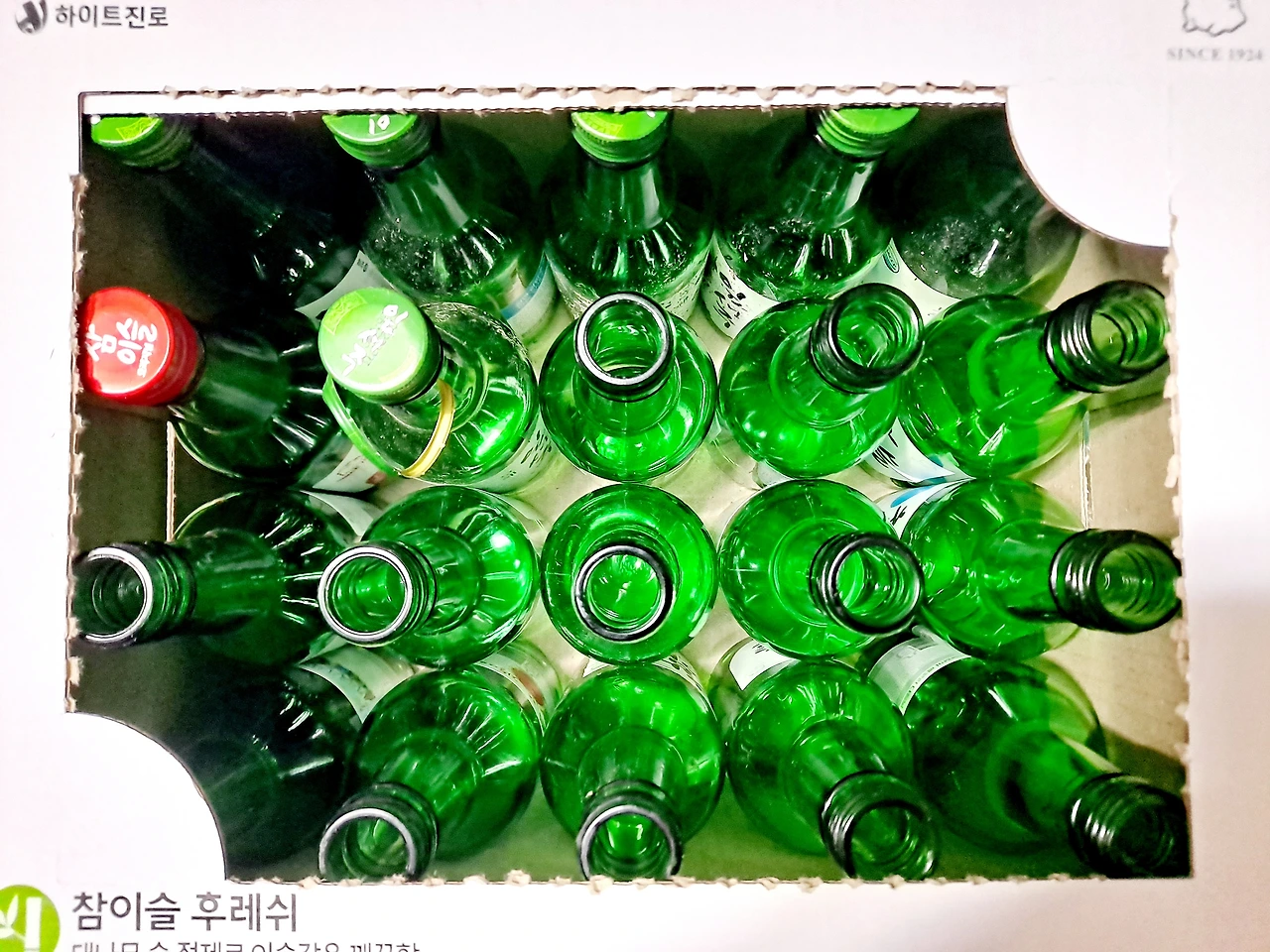 남편의 갑작스러운 통보에 화들짝 놀란 공병 손님이 반격에 나섰다. 틀린 말은 아니다. 다만 우리 가게에서 두 병을 사 가고 다음날 다섯 병을 가져오는 방식이었다. 공병을 그냥 가져오기에는 미안했던 것인지 우리 가게 소줏값이 300원 더 싸서였는지는 알 길이 없다(작은 슈퍼는 저녁 일찍 문을 닫아서 밤에 오는 경우가 더러 있다).