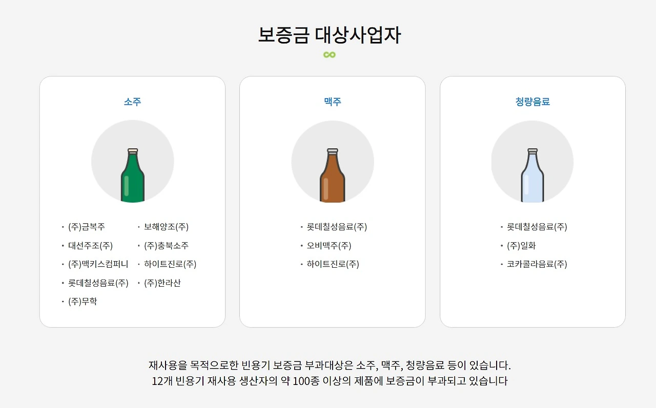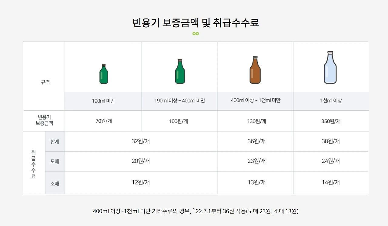 3. 병의 크기에 따라 보증 금액도 다르다.