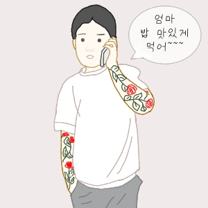 "엄마 나 친구 만나러 가 엄마도 밥 맛있게 먹어~~"