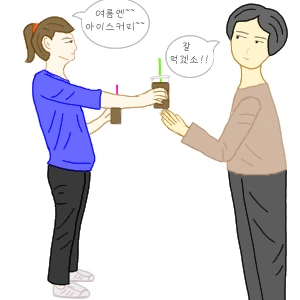 "그럴까요? 그럼 사장님 냉커피 드세요.