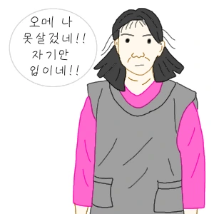 아주머니가 화가 나 똑같은 걸