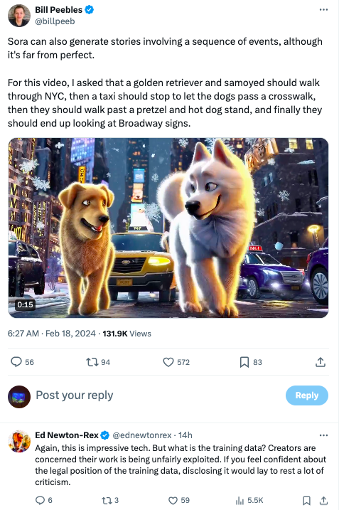 Sora 연구원에게 출처를 묻는 에드의 트윗에는 부정적인 글도 달립니다. ‘브로, (데이터 출처에 대해) 이제 아무도 신경 안 써’라고 말이죠. 정말 이제는 아무도 신경 쓰지 않는 문제일까요?