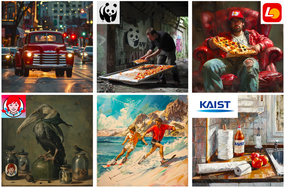 로고를 배운 AI는 다음 미션에 착수합니다. '조용히' 침투하려는 전략인데, 로고가 너무 튀면 의미가 없겠지요? 2단계는 AI가 스스로 로고가 자연스럽게 침투할 수 있는 최적의 위치를 찾은 다음, 그 이미지의 분위기에 맞춰 로고의 색이나 질감도 비슷한 톤으로 변형하는 단계입니다. 그래야 ‘붙인’ 티가 안 날 테니까요.