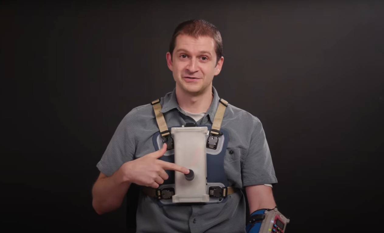 돌고래와 소통하는 환상의 세계를 열기 위해서는 먼저, 사진 속 스콧이 몸에 두른 기기를 알아야 합니다.