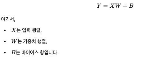 원래의 Transformer에서는 선형층에 바이어스항이 포함되어 있었습니다. 일반적인 선형변환은 다음과 같이 계산됩니다.