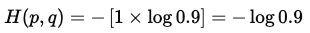 한편 q(x = 사과)가 1에 가까워질수록 log q(사과)의 절대값은 작아지며, 이에 다라 손실도 작아집니다. 즉, 모델의 예측확률분포가 실제 확률 분포에 가까워질수록 교차 엔트로피값은 작아집니다.