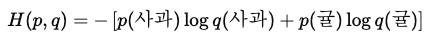 여기서 p(귤) = 0이므로, p(귤)log q(귤)항은 0이 됩니다. 따라서 교차 엔트로피는