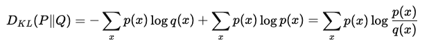 여기서 P와 Q는 두 확률 분포를, x는 확률 변수(사건)를 나타냅니다. 직관적으로 KL 다이버전스는 Q가 P에 얼마나 가까운지를 나타내는 지표로 이해할 수 있습니다. 실제로, Q가 P와 완전히 일치하는 경우 KL 다이버전스는 0이 됩니다.