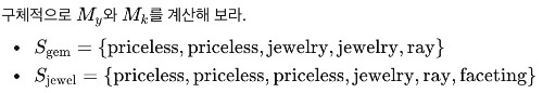 가 됩니다. 보통 거리 개념을 기반으로 유사도를 정의하면 모든 토큰 쌍의 유사도가 똑같이 나와 버리는 문제가 생깁니다.