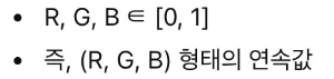 (R, G, B)를 {0, 1, ..., 255}의 정수값으로 표현한다거나,