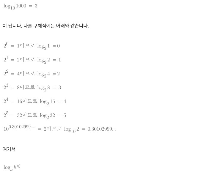 는 지수를 뒤집어 높은 것으로 a를 몇 제곱하면 b가 되는지를 나타냅니다. 예를 들어, 10을 3제곱하면 10X10X10X10 = 1000이 되므로