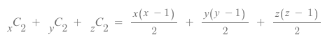 N장의 카드가 있으며, 왼쪽부터 i번째(1 ≦ i ≦ N) 카드의 색은 Ai입니다. Ai = 1이면 보라색, Ai = 2이면 주황색, Ai = 3이면 파란색입니다. 같은 색 카드 2장을 선택하는 방법은 몇 가지일까요?