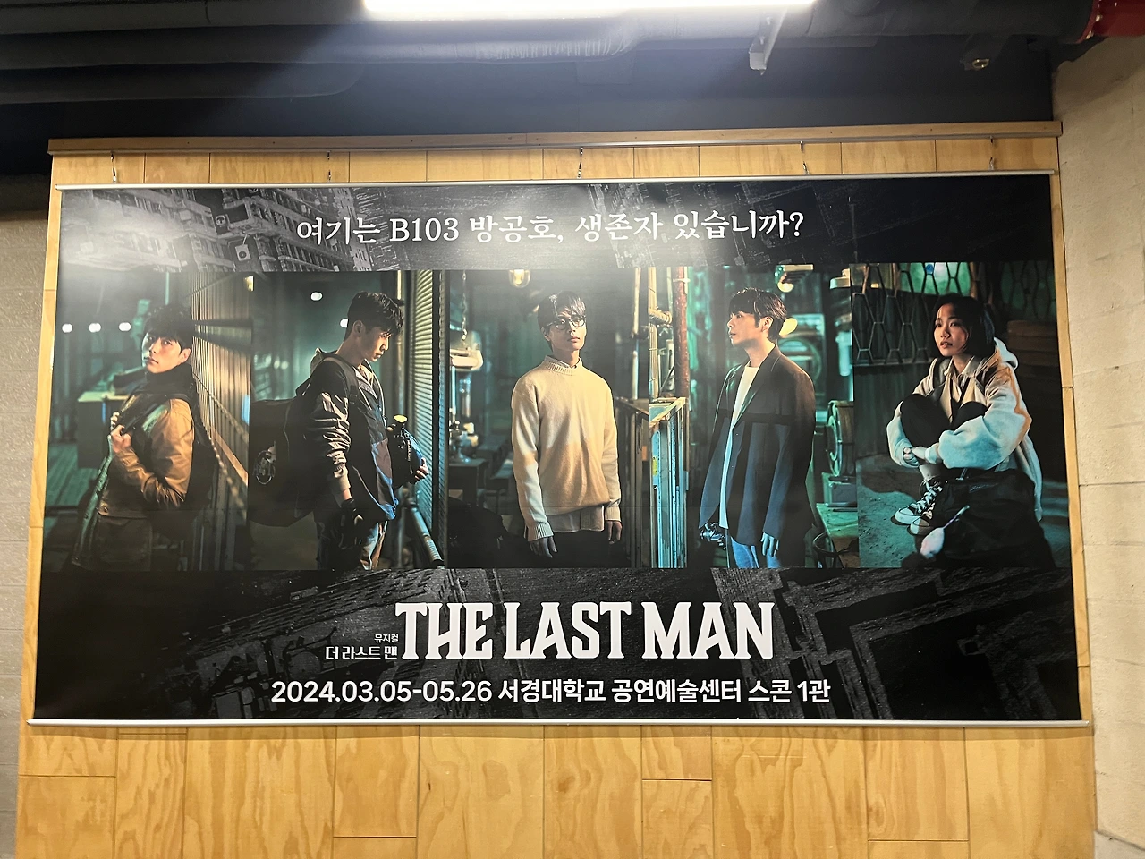 뮤지컬 더라스트맨은 1인극이다. 100분 동안 ‘생존자’라고 불리는 주인공 한 명이 혼자 노래하고 울고 웃고 다하는 극이다. 배우는 남녀 멀티캐스팅이고, 배우에 따라 극의 디테일이 꽤 다르다.