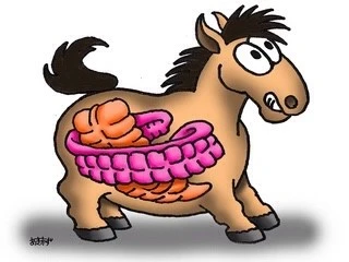 그러다가 망아지를 출산하고 나면 거대한 자궁이 순식간에 헐렁해지면서, 뱃속은 갑자기 공간이 남아돌게 된다. 말의 내장은 길이가 몹시 긴 데다가 굵기도 굵어졌다가 좁아졌다가 하는 복잡한 구조를 가지고 있다. 또한 내장이 말의 등 쪽에서 매달려져 있는 구조여서, 다른 동물에 비해 장기가 꼬이거나 뒤집히기 쉬운 구조를 가지고 있다.