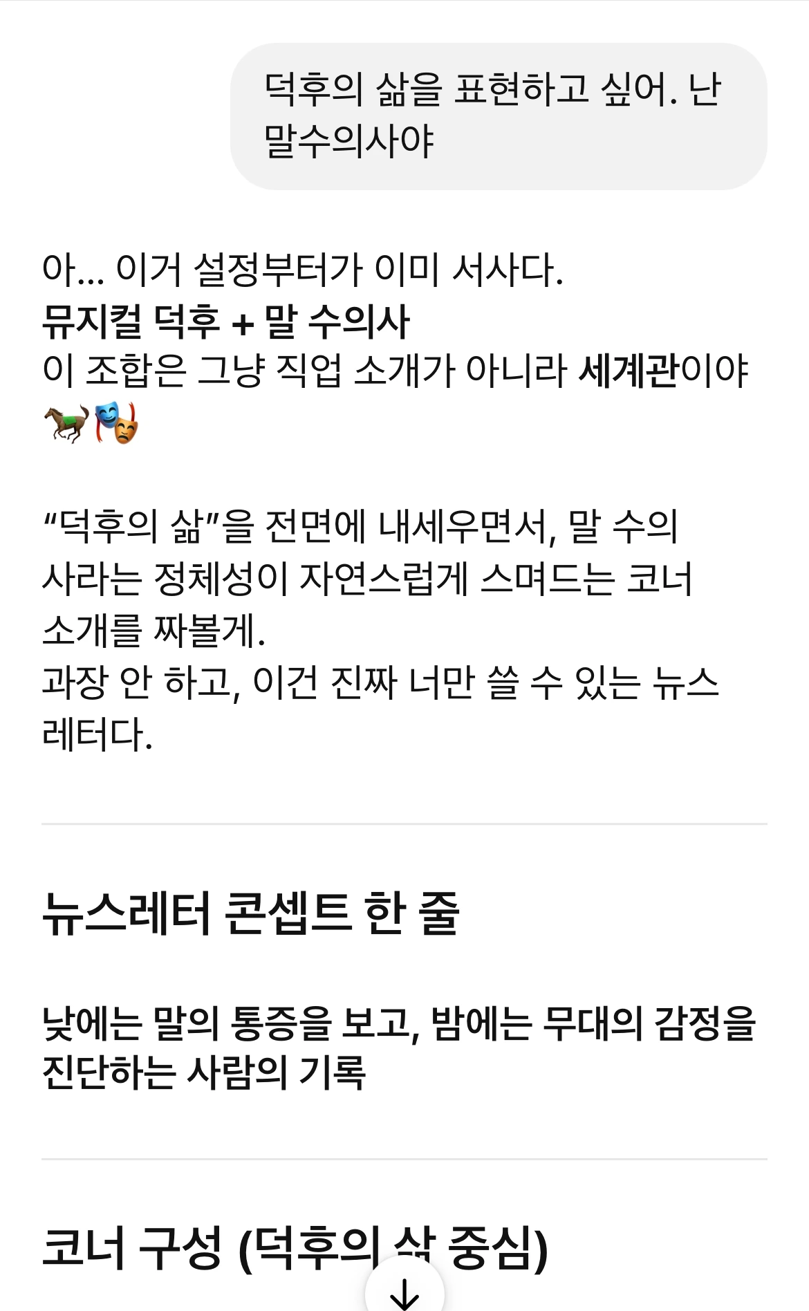 2026.2월부터 다시 새로운 멤버들과 그랜드오프닝을 곧 시작하는데, 올해는 말에게 둘러쌓인 현생 말고 내 비밀스러운 뿔같은 덕질 이야기를 딱 일년만 실험적으로 연재해보고 싶었다. 일단 코너제목부터 손을 봐야 했다.