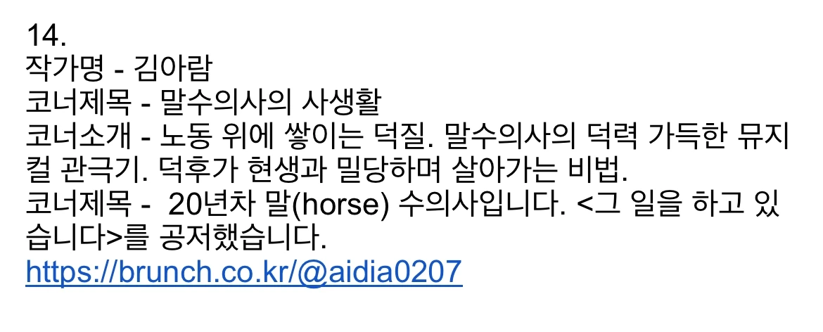 20명의 작가가 돌아가며 매일 무료글을 발행하는 엄청 재미있고 유익한 뉴스레터가 있다. ‘세상의모든 문화‘ 이다. 감사하게 나도 그 일원으로서 작년에는 ‘수상한 말수의사’라는 코너로 한달에 한번씩 말 이야기를 썼다.