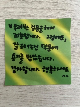 도대체 왜 그게 그렇게 피하고 싶은 거야? 내 등의 그 끈끈이를 하나하나씩 떼서 테두리 밖으로 좀 나가보자. 그게 뭐라고 그렇게 못할 일이라고 그렇게 주저하는 거야? 그냥 가게 가서 거절당하고 끝내면 되지 도대체 그게 뭐라고 그렇게 안 일어나고 질질 끄는 거야? 팀 페리스 아저씨의 난데없는 꾸짖는 말에 왠지 자존심이 상해서 나는 책을 읽다 말고 내 의지를 실험해보자는 마음이 들었다. 그 길로 마음이 바뀌기 전에 바로 서브웨이에 갔다. 점원이 진상력으로 혹여나 데미지를 입을까 싶어 사과 메모도 준비했다.