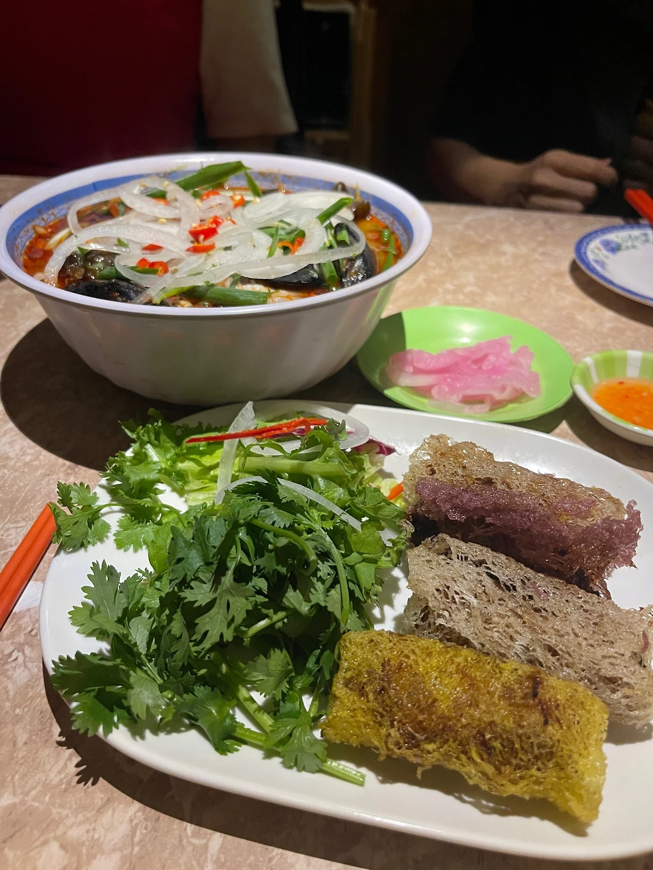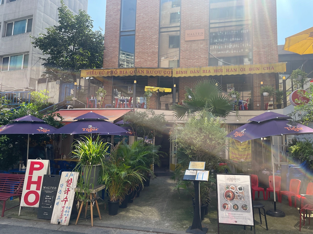 주변 매장들에 비해 꽤 큰 규모를 가지고 있음에도 한두 시간 웨이팅은 기본이다. 우리도 3번째 방문만에 저녁시간을 한참 지나서야 겨우 들어갈 수 있었다. 효뜨는 들어서는 입구부터 큰 나무와 파라솔, 노란 어닝으로 베트남의 느낌이 물씬 풍겨진다. 식사가 나올 때까지 매장에서 보고 느끼고 만지는 모든 것이 베트남 현지를 떠올리게 하는 요소들로 가득 차 있다. 벽에 걸린 오래된 베트남 포스터와 빨간 조명, 원색에 화려한 무늬가 새겨진 접시와 플라스틱 테이블, 젓가락, 컵... 무엇보다 노랑・빨강 컬러의 메뉴판에는 베트남어를 기본으로 번역한 듯한 투박한 한글이 덧붙여져 있어 제대로 현지 분위기를 느낄 수 있었다.