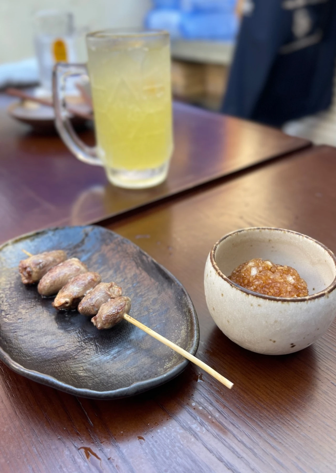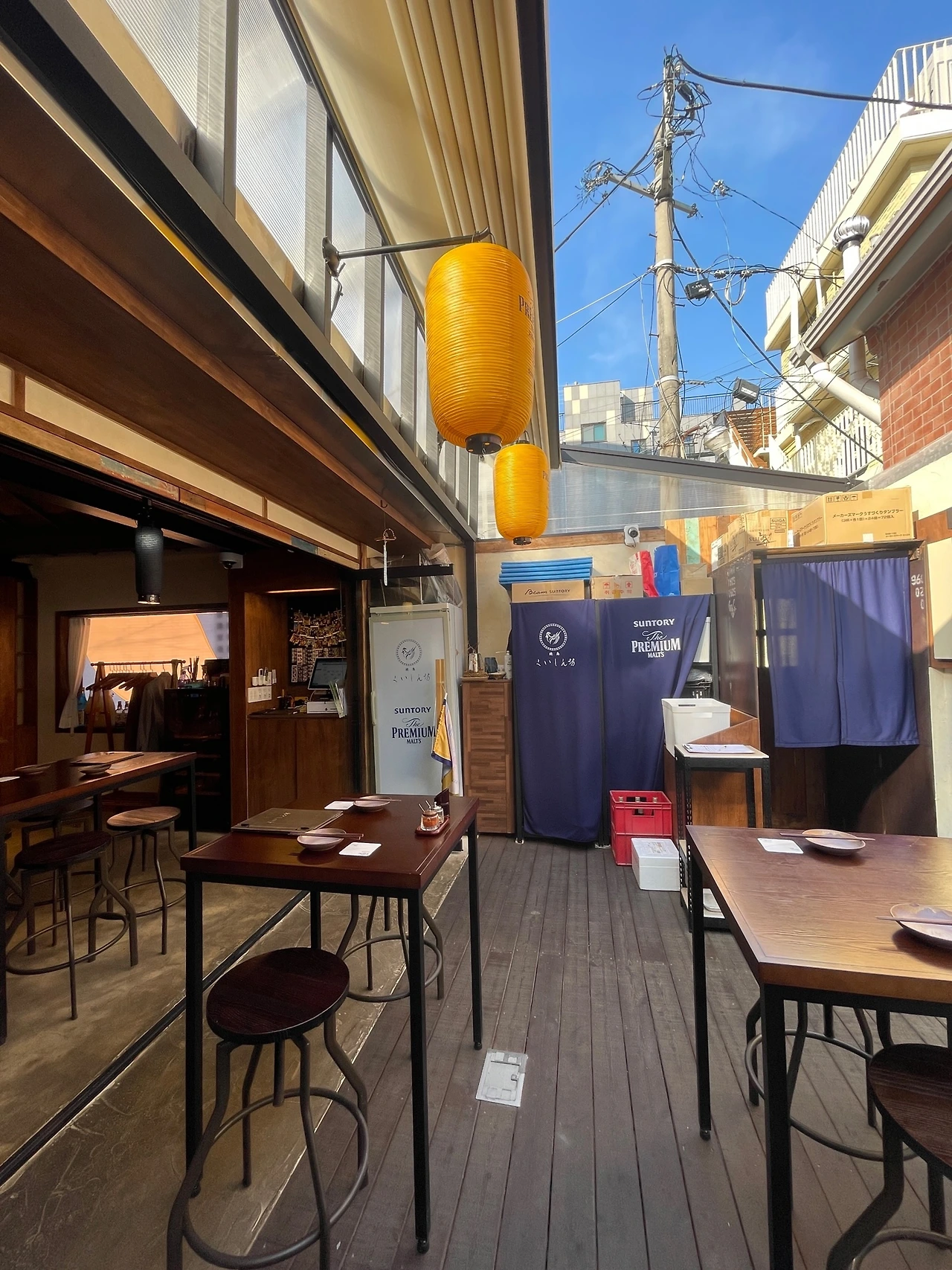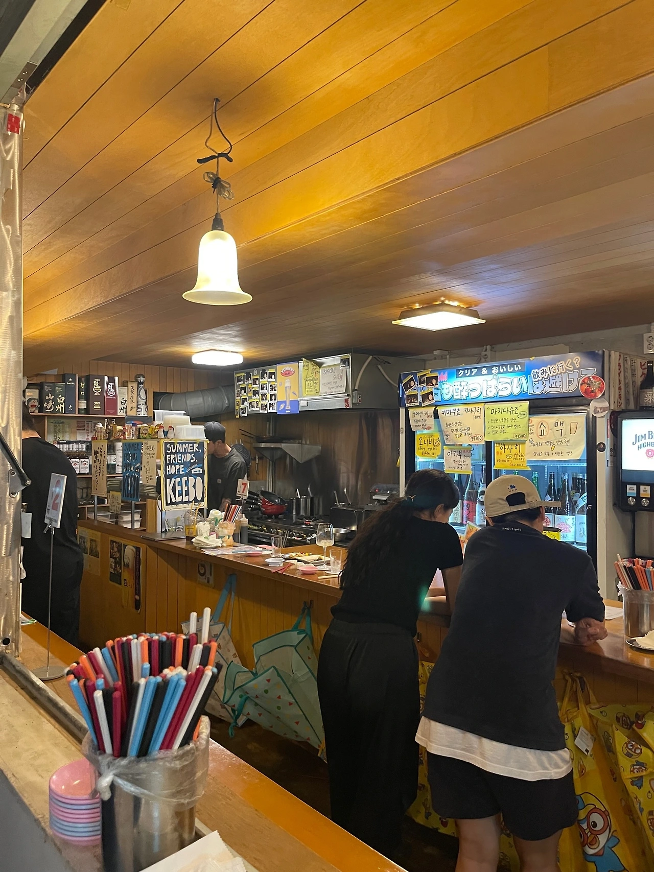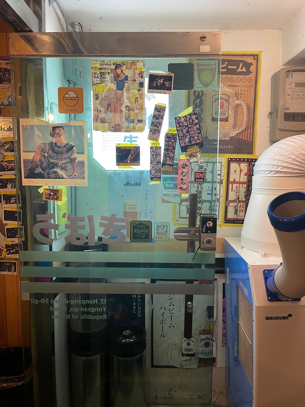 주택 사이에 위치해 있어 사방이 막혀있음에도, 반쯤 지붕 없이 하늘로 통하는 인테리어는 마치 노상에 앉은 듯이 시원한 뷰를 선사했고, 일본식 제등과 작은 사이즈의 높은 테이블, 주방 벽면 가득한 일본 주류패키지들은 도쿄에서 경험한 이자카야를 그대로 닮아있었다. 일식 헤어밴드를 착용한 종업원의 낯선 한국말을 통해 주문을 마치면, 주문한 요리들은 일본의 이자카야 메뉴들이 으레 그렇듯 정성스럽게 한 종류씩 서빙된다. 어느 것 하나 한국이라고 느낄 수 없는 이 곳에서 일본 음악을 들으며 각자 산토리니 하이볼과 생맥주를 한 잔씩 들고 부드럽게 익혀진 꼬치를 먹고 있다 보면 소박하고 소소한 일본의 감성이 물씬 느껴진다. 정말 디테일하게 일본스러운 공간이다.