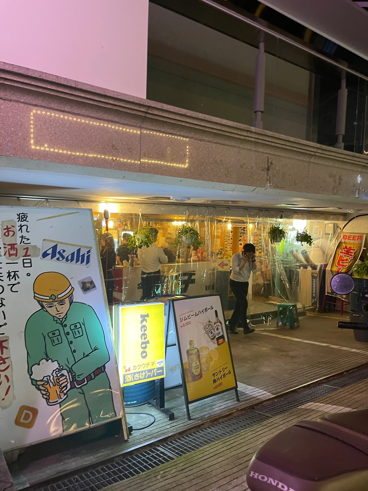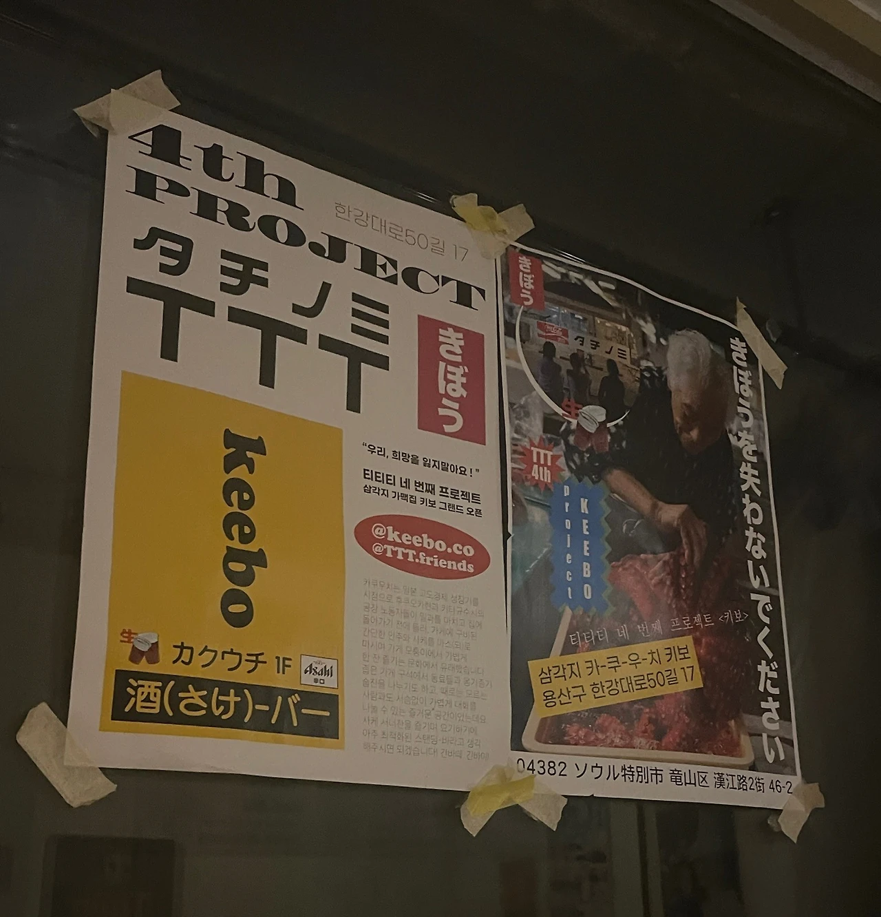 야키토리 쿠이신보가 조금 찾기 어려운 탓이었는지 <키보>는 간판이 없어도 수월하게 찾을 수 있다. 도로에 위치해 있을 뿐만 아니라 매장의 전면을 모두 오픈하여 일본 컨셉을 들어서기 전부터도 물씬 느낄 수 있도록 일본 컨셉을 확실하게 보여주고 있다. 키보는 식사 전후에 가볍게 즐기는 일본 노포 컨셉이다. 공식 인스타에는 ‘약속 전, 혹은 진하게 마신 술도 왠지 아쉬운 날에는 망설임 없이 키보의 문을 열어졎혀주세요’라는 말과 함께 자신들을 캐주얼 스탠딩바로 소개하고 있다. 앉을 수 있는 좌석 없이 오로지 스탠딩 테이블만 세팅되어 있고, 메뉴들도 모두 가볍게 먹을 수 있는 안주로 이루어져 있다.