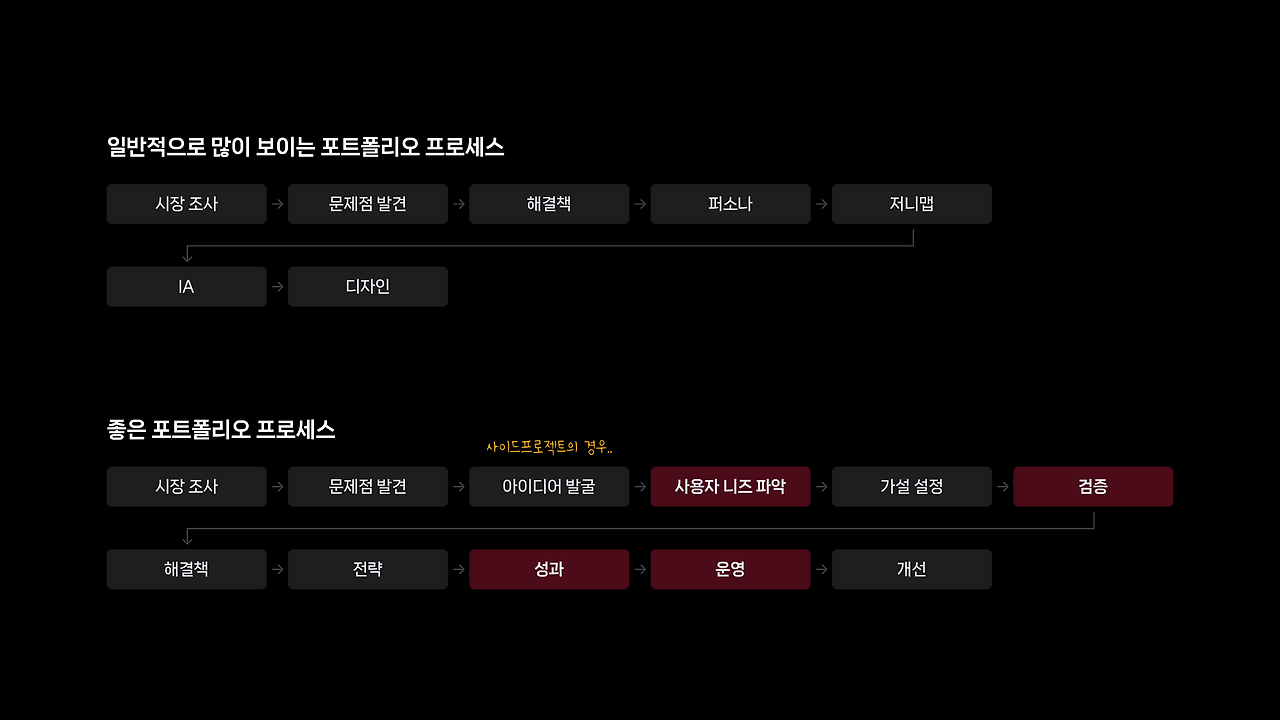 그렇기 때문에 내 생각만 나열하지 말고, 사용자의 생각도 함께 보여주면 더욱 좋은 포트폴리오가 될 것이다.