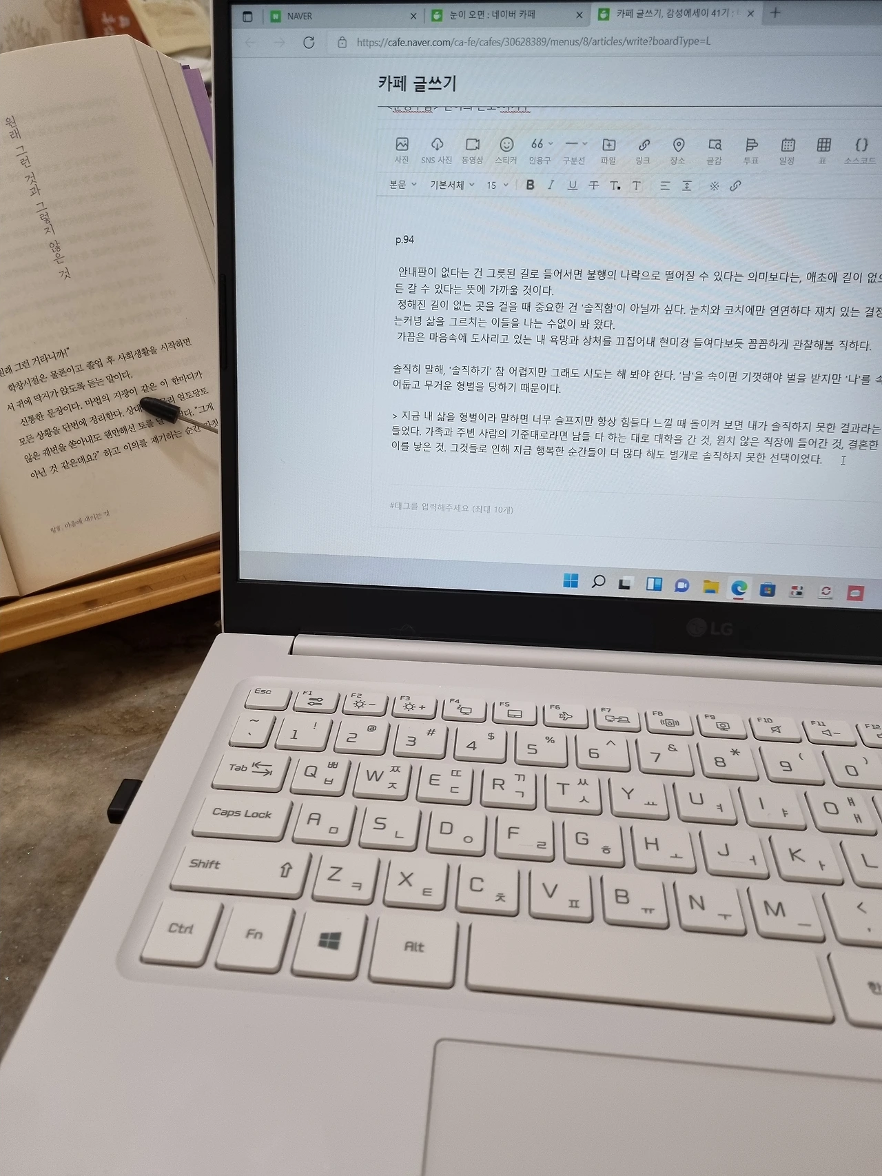 이번 주에 생일선물로 남편에게 노트북을 받았다. 명품 가방보다 비싼 노트북을 받은 것도 아니다. 해마다 받은 다른 생일선물과과 의미가 남다르다. 드디어 나의 ‘작가 놀이’를 인정해 주겠다는 뜻이다. 집에 데스크톱, 여러 대의 태블릿, 스마트폰, 블루투스 키보드가 있어 맘만 먹으면 글을 쓸 수 있다.(스마트폰과 엄지손가락만으로 출간한 작가도 있으니 말이다.) 연장을 탓하는 솜씨나쁜 목수라 자처하는 꼴이지만 진짜 작가들처럼 노트북으로 쓰고 싶었다. 함께 블로그 글쓰기를 하는 분들을 비롯한 글 잘 쓰는 분들도 거의 노트북으로 쓰고 있지 않은가!ㅎㅎㅎㅎㅎ