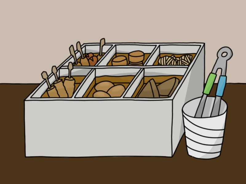 1. 점원에게 "오뎅 오네가이시마스(오뎅 부탁합니다)" 라고 말한다.