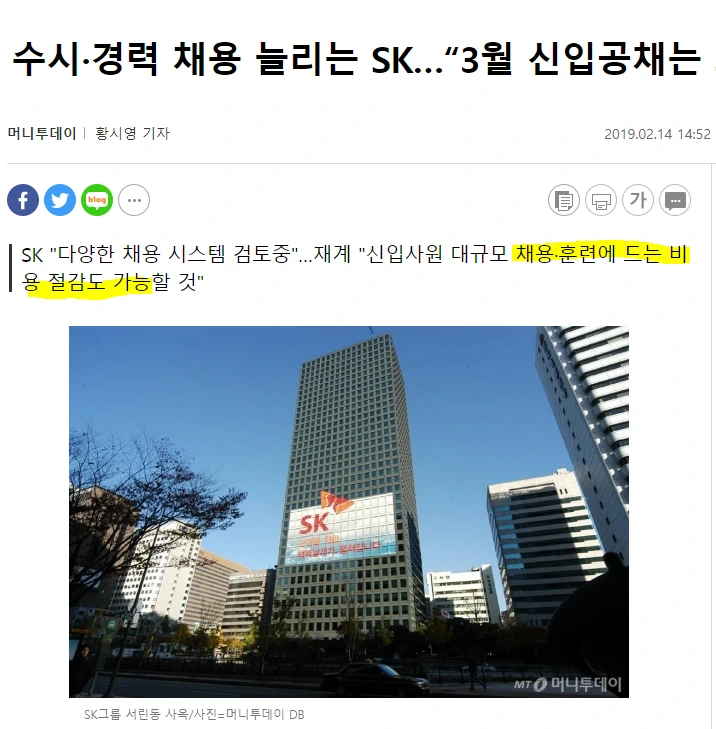 ▲ 신입사원 교육비는 기업입장에서 엄청난 부담이다. 머니투데이 기사. http://news.mt.co.kr/mtview.php?no=2019021414160430700