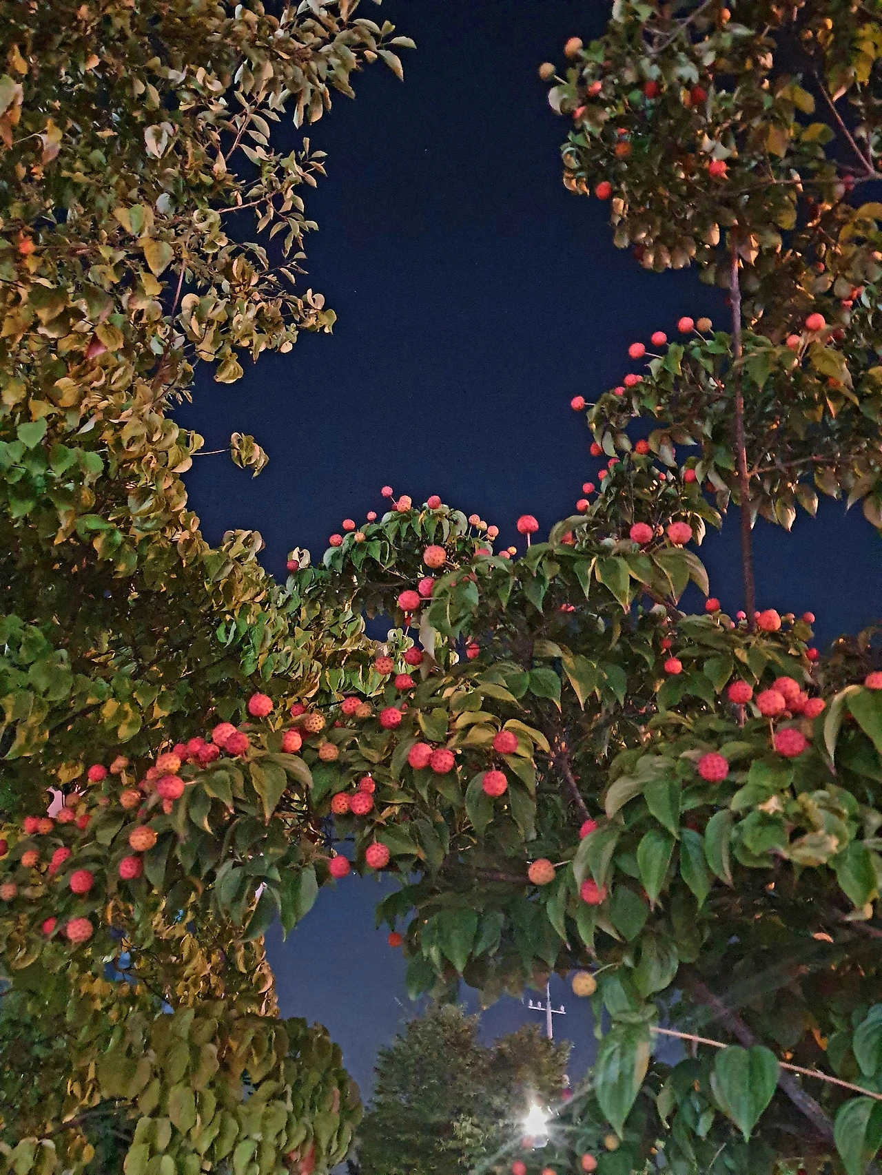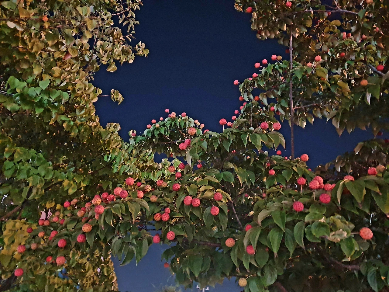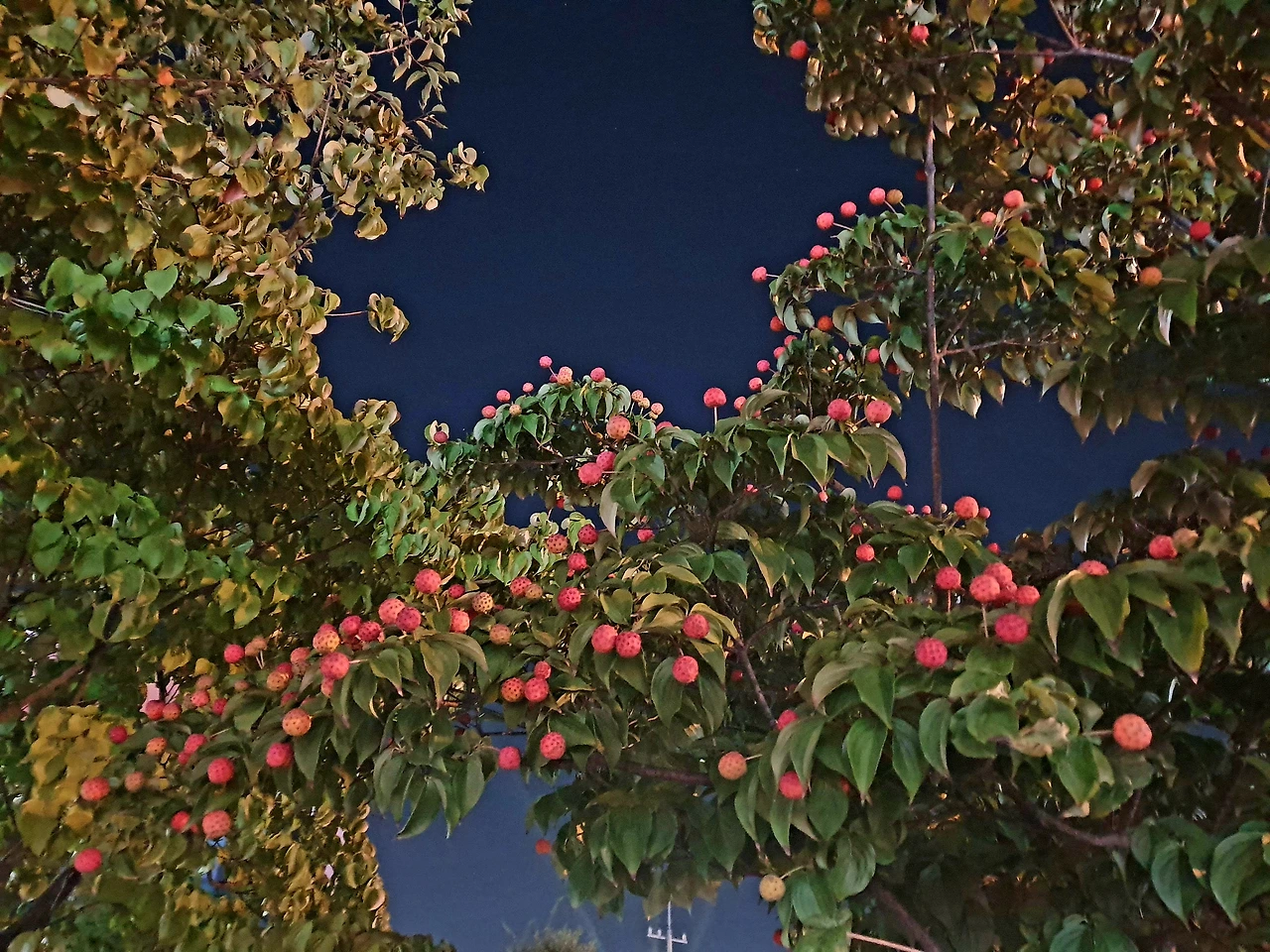 밤에 찍은 산딸나무 너무 이쁜데 이젠 찍을 수 없는 풍경이네요