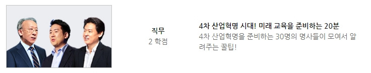 티스쿨은 비상교육에서 만드는 교사연수 사이트이다. 교사 연수사이트가 참 많이들 생겼다. 좋은 연수를 많이 만들어 주는 건 좋은거다. 최근에 창작과 비평사에서도 교사 연수 사이트를 만들었던데. 아무튼 이번에 받는 연수는 일명 '미래교육을 준비하는 20분' 세바시 강연이랑 연결되서 이 곳에 소개하기도 좋다. 혹시라도 문제된다면 누군가 연락주시길. (설마 티스쿨에서 저작권 위반으로 연락올려나? 뭐 유튜브에 다 있던데. 강의 내용과 시험, 과제만 공유안하면 되지 않을까?)