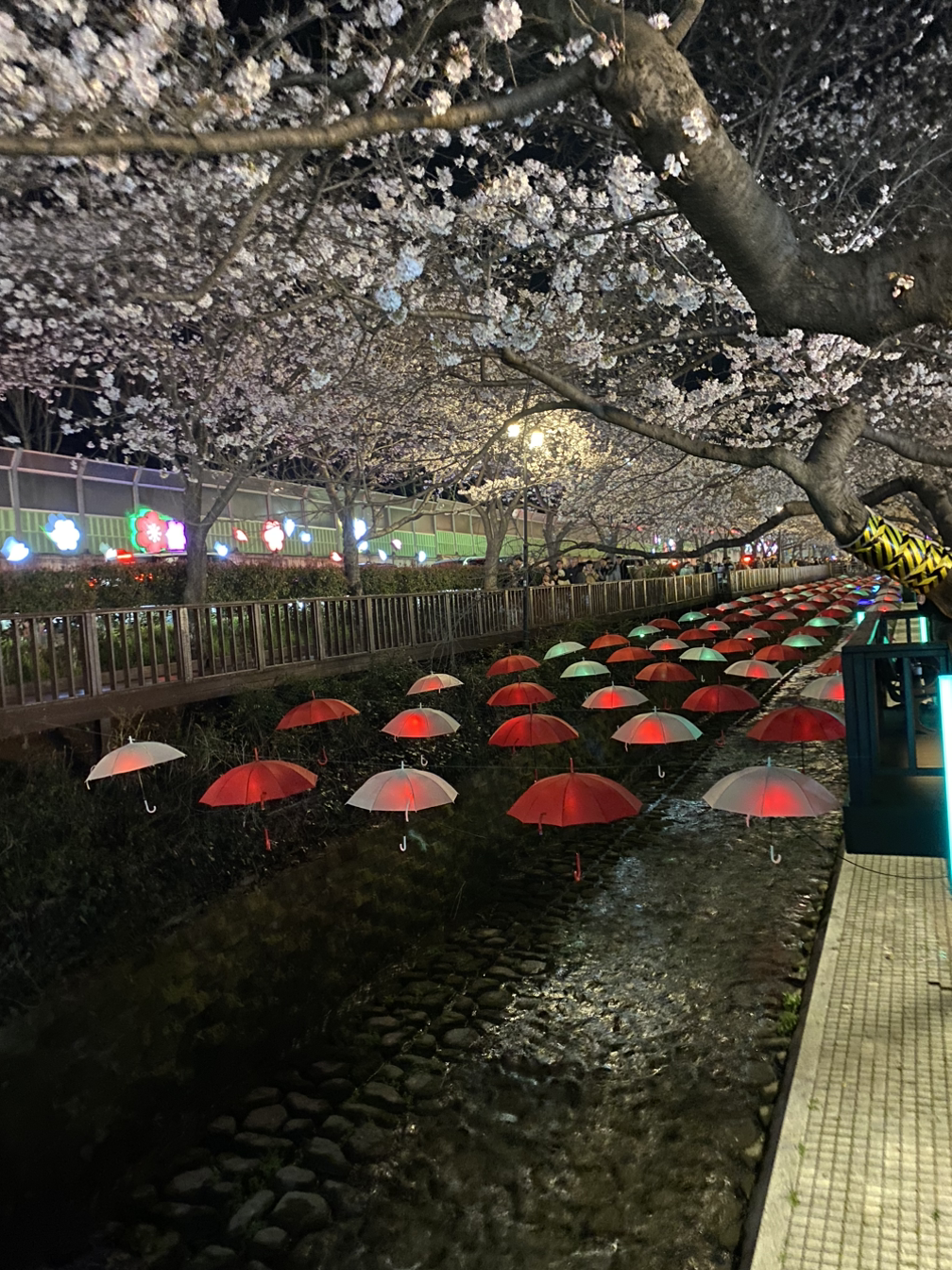 청계천 보다는 조금 규모가 작지만 아주 기다란 천이다. 그 좌우로 흐드러지게 펴 있는 벚꽃들.