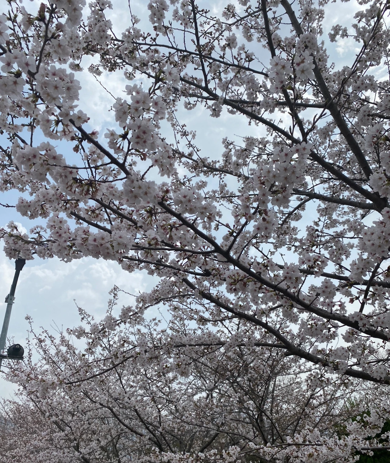 점퍼까지 입으려면 아무래도 덥겠지? 결국 니트는 벗어던지고 벗꽃 산책을 시작했다.