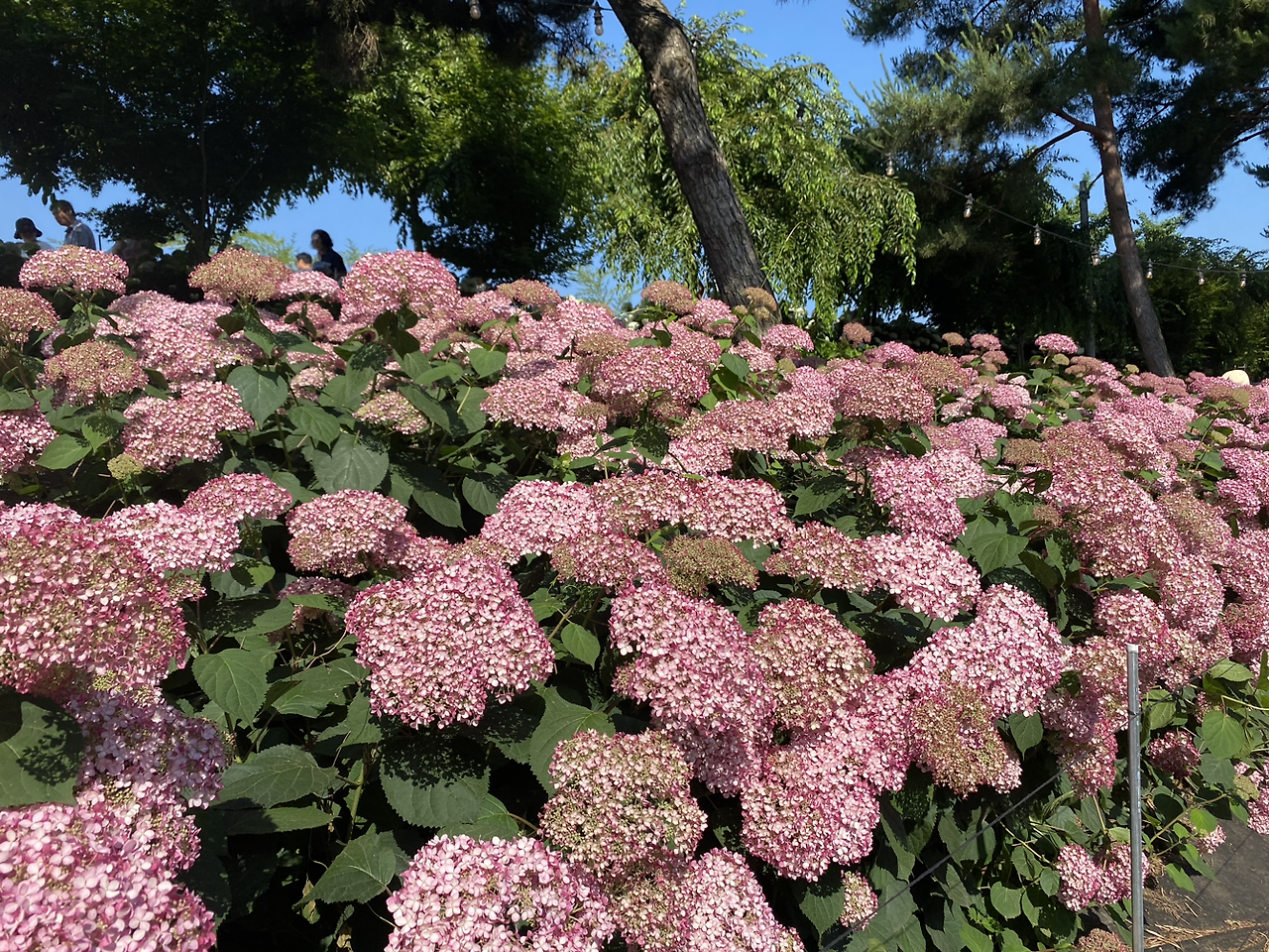꽃들은 아주 크고 참스러웠다. 난 파란색을 좋아하는데 분홍색도 있고, 흰색도 있고. 탐스러운 건 내 머리 만하다. 하나 꺾어서 머리에 이고 다니면 재미있겠다 생각도 했다만, 절대로 그러면 안되겠지. 몰래 수국을 캐가는 사람도 있는 모양이다. 아, 인터넷에서 모종을 파는데 2만원이 넘었던 걸로 기억한다. 그러니 저 수국을 다 돈으로 보는 사람도 있겠군.