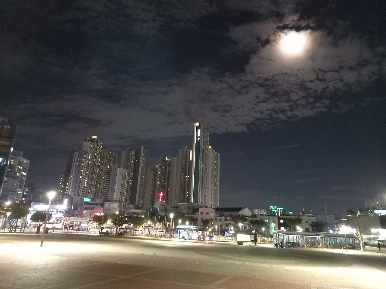 광장에서 달을 찍고 싶었다. 밤이라 인적은